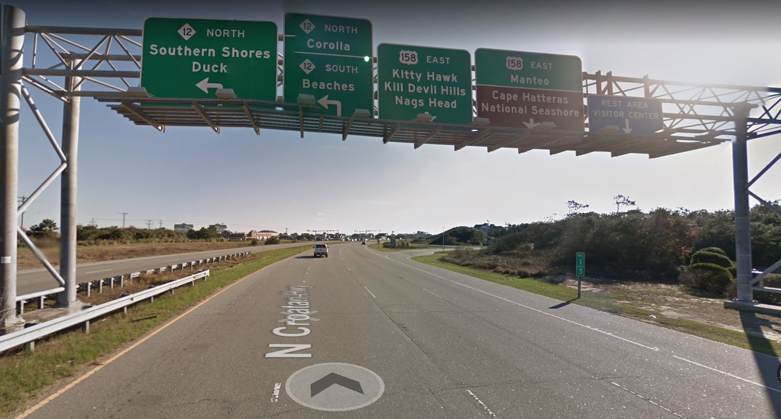 Corolla. The next 2 lanes to the right stay on Highway 158 to Kitty Hawk,