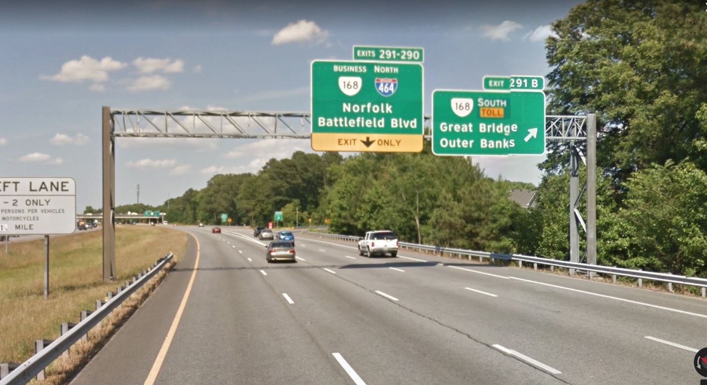 pay toll unless you get off at GREAT BRIDGE and take BUSINESS 168. While